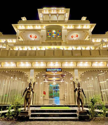 The Architecture of the Palace is inspired from the heritage properties of Rajasthan, built in imperial style, consisting of Luxurious Lake View Rooms and Suites with a Royal 5000 sq.ft. Banquet Hall, 100000 sq.ft. Garden Area, organising Ethereal Destination Weddings, A Party Hall as well as a Back Garden, where we can make the best arrangements for your every occasion with some other leisure activities.